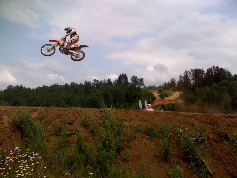 Malgré les apparences d'une course de jet ski, la fin de semaine a été splendide. Un peu crémeuse le matin, la piste offrait une excellente traction tout le reste de la journée. À souligner les bonnes prestations des pilotes locaux Jean-Yves Allard de Leclerville 4 ème expert 250f et 4 ème expert open Hubert Rousseau, St-Apollinaire, 1 er expert Open Dave Blanchet, St-Apollinaire, 1 er 85cc 12-15 Christopher Fortier, Ste-Croix, 3 ème Pee-wee 6-8 open et 3 ème Super mini 65 Alison Bilodeau, St-Sylvestre, 5 ème Pee-wee 6-8 open Thomas Caron, St-Apollinaire, 4 ème 65 10-11 Anik Boulianne, Laurier Station 2 ème femme junior Pour les résultats complets, cliquez ici 20 juillet 2007, 7h30 am On a reçu et on reçoit encore de la pluie à St-Apo, mais grâce à notre fond de terre rouge et notre système de drainage, il n'y a pas vraiment de conséquences. La piste est prête depuis mercredi. L'événement se déroulera tel que prévu sous le soleil dit-on, samedi et dimanche. .