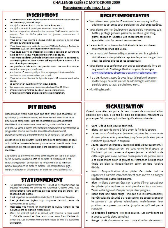 du Challenge Québec de motocross (70$) et une licence de pilote.